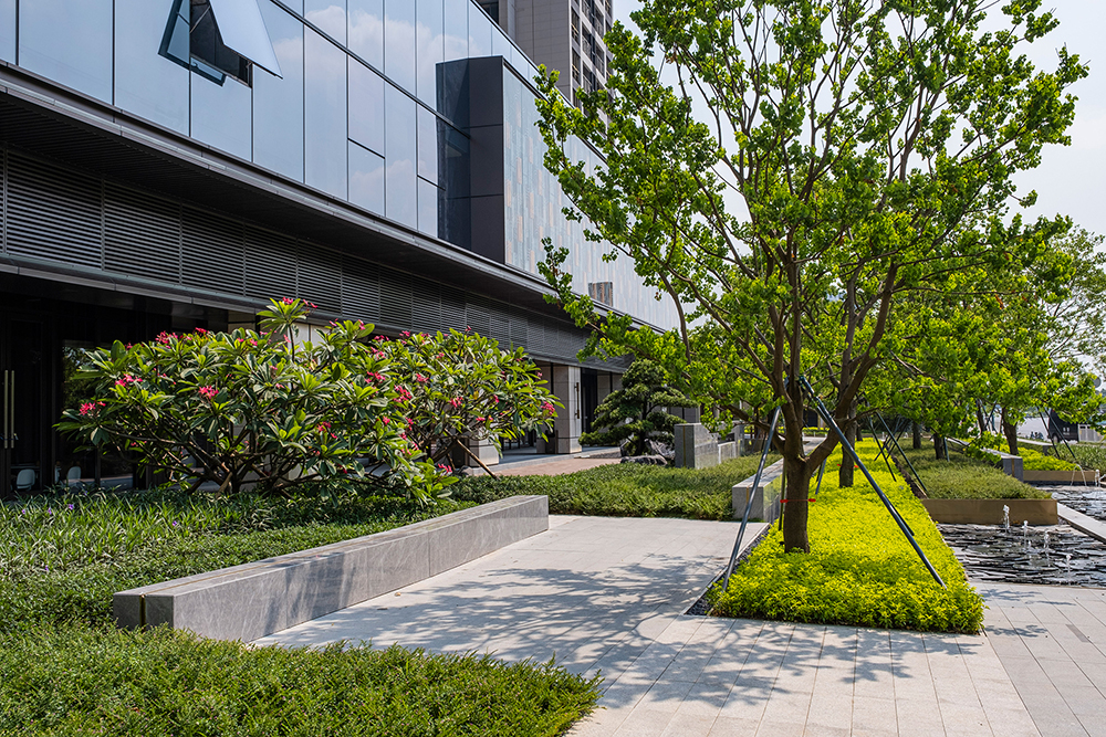 項(xiàng)目位于深圳市寶安區(qū)松崗街道碧頭社區(qū)松福大道北側(cè),展示區(qū)利用項(xiàng)目開放園林區(qū)域的一部分作為營銷展示區(qū),工期緊,交叉作業(yè)點(diǎn)多面廣,對園林景觀施工單位的現(xiàn)場協(xié)調(diào)、資源調(diào)配、工期把控、安全質(zhì)量管控等工程管理能力要求較高。展示區(qū)除了營銷中心區(qū)域外,還包括人行通道及入口、入口附近運(yùn)營圍墻及綠地改造、入口附近必要市政道路鋪裝改造、入口景墻及精神堡壘等立體展示,施工及后續(xù)養(yǎng)護(hù)須考慮專項(xiàng)措施。微風(fēng)輕拂,樹影斑駁,淺聞草香,閑庭漫步。在光影的微妙變化中,來到疏朗通透的林蔭空間,從自然的深邃里提煉出美學(xué)與詩意,創(chuàng)建一種自然生活的氣韻,營造一個(gè)自然的詩性啟蒙空間,喚醒內(nèi)心對自然山水生活的向往。自然之始,境隨念轉(zhuǎn),內(nèi)在世界平靜幻化。讓自然美態(tài)融入統(tǒng)一而又深淺延宕的意脈之中。烏桕純林由于時(shí)間的變化,秋天時(shí)節(jié)呈現(xiàn)的黃色,與干凈疏朗的灌木綠籬形成鮮明對比,也由此豐富了視覺體驗(yàn)。