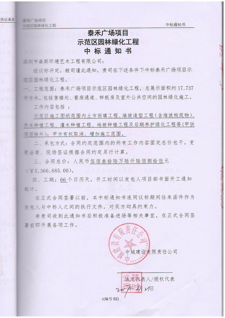 恭喜公司中標泰禾廣場項目示范區(qū)園林綠化工程,該工程總價5366685元,工程展示面積約17737平方米,工作內(nèi)容包括:售樓處、看房通道、樣板房及室外公共空間的園林綠化施工,示范區(qū)施工圖紙范圍內(nèi)土方回填工程、堆坡造型工程(含堆坡構(gòu)筑物)苗木種植工程、灌木種植工程、地被種植工程及后期養(yǎng)護綠化工程等。