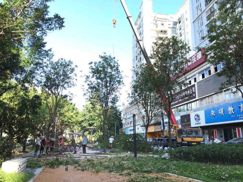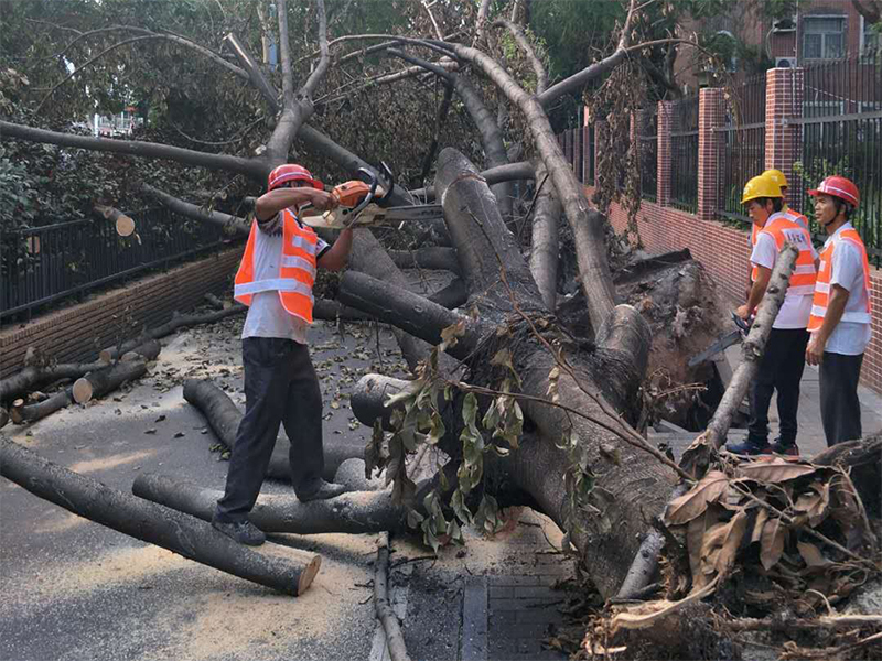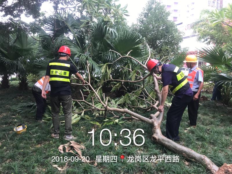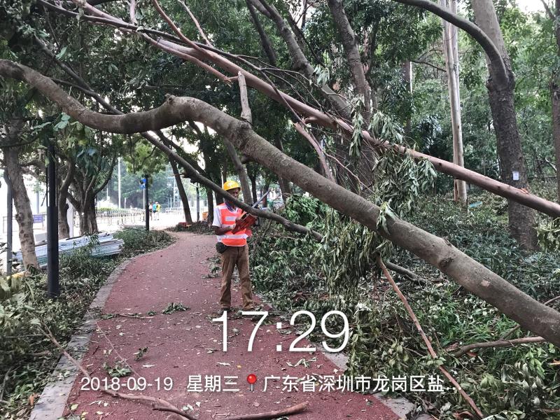 本次搶險共出動人員2100個工日,投入25臺起吊機、16臺隨車吊、垃圾清運車15輛、清除倒伏、死亡樹木共263株,修剪樹木斷枝10余噸、扶正加固定樹木共476株,共清理龍平西路、龍崗大道、龍沙大道、龍景立交、光明大街、光翠路、金輝路、前海路、常興路、深南大道等雙向街道約68km的路面障礙。在徐向明董事長的高度關注下,各事業部的努力配合中,森斯人分工協作,團結一致,在風雨中清理各類障礙物,彰顯森斯環境的企業擔當。