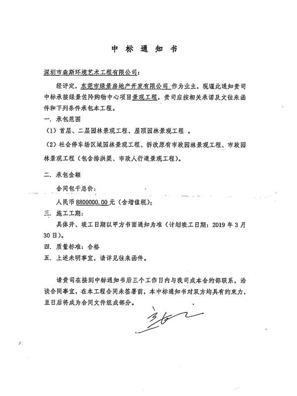 恭喜森斯環境入選2018-2020年度羅湖區政府投資建設預選招標-城市園林綠化專業承包組