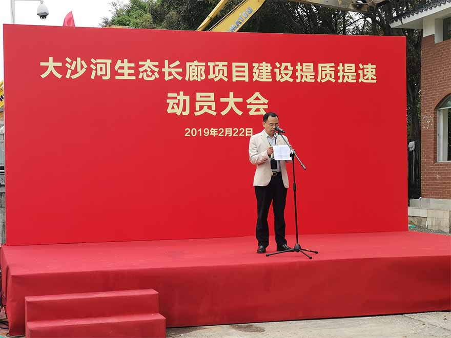 2019年2月22日上午9:30分在大沙河公園西門施工現(xiàn)場(chǎng)內(nèi)隆重召開(kāi)了“大沙河生態(tài)長(zhǎng)廊項(xiàng)目建設(shè)提質(zhì)提速動(dòng)員大會(huì)”,南山區(qū)常委、黨組成員黃雪平、南山區(qū)城管局局長(zhǎng)張玉慶、華潤(rùn)(深圳)有限公司城市建設(shè)運(yùn)營(yíng)事業(yè)部副總經(jīng)理藍(lán)鍵參加會(huì)議,南山區(qū)城管局副局長(zhǎng)陳暉鵬等領(lǐng)導(dǎo)參加主持會(huì)議。我司領(lǐng)導(dǎo)徐復(fù)明、李廣文,項(xiàng)目負(fù)責(zé)人黃河清、湯建明、何世力、吳響亮等 15 位協(xié)同施工人員一同參與了本次大會(huì)。