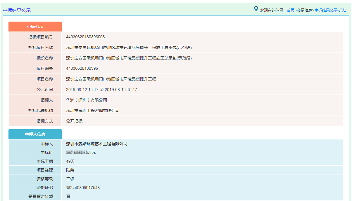 喜訊 | 森斯環境中標深圳寶安國際機場門戶地區城市環境品質提升工程施工總承包(示范段)
