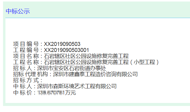 恭喜森斯環境9月9日中標石巖轄區社區公園設施修復完善工程,該工程位于寶安區石巖街道,招標內容包括但不限于本項目的公用設施修復,包括體育設施、花池、鋪裝、路燈、護欄等,計劃開竣工日期:2019年09月20日 至 2019年10月19日。
