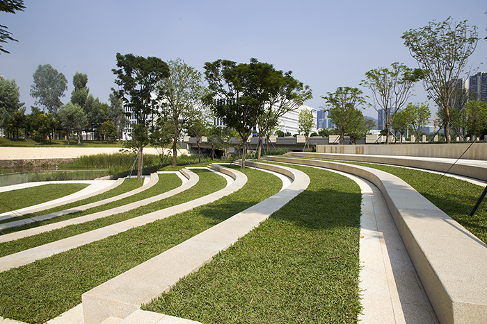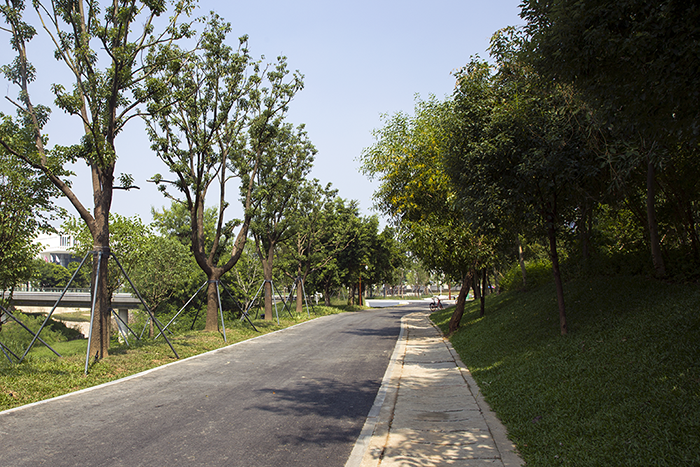 這是途徑南方科技大學段的香樟林蔭道和鳳凰木廣場,樹形優美、枝葉茂盛,現在看上去的效果是“理所當然”,卻是黃經理等人經過三番五次、不厭其煩地對喬木及地形進行調整優化后最終呈現出的綠化效果。