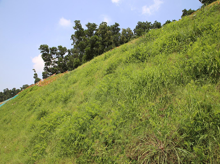 施工完成后,歷時兩個月的養(yǎng)護(hù),邊坡生態(tài)修復(fù)效果已經(jīng)有了較好的效果。