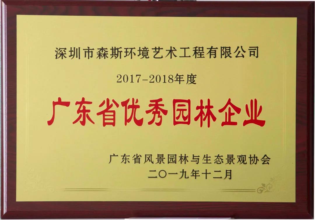 近日,廣東省風(fēng)景園林與生態(tài)景觀協(xié)會對“2019年度廣東省優(yōu)秀園林企業(yè)”、“2019年度廣東省園林綠化行業(yè)誠信企業(yè)”、“2019年度廣東省風(fēng)景園林與生態(tài)景觀優(yōu)良樣板工程”獲獎的單位及工程項目進行了頒獎。深圳市森斯環(huán)境藝術(shù)工程有限公司(以下簡稱“森斯環(huán)境”)憑借自身的專業(yè)實力,榮獲“2017-2018年度廣東省優(yōu)秀園林企業(yè)”、“2019年度廣東省園林綠化行業(yè)誠信企業(yè)”榮譽稱號!