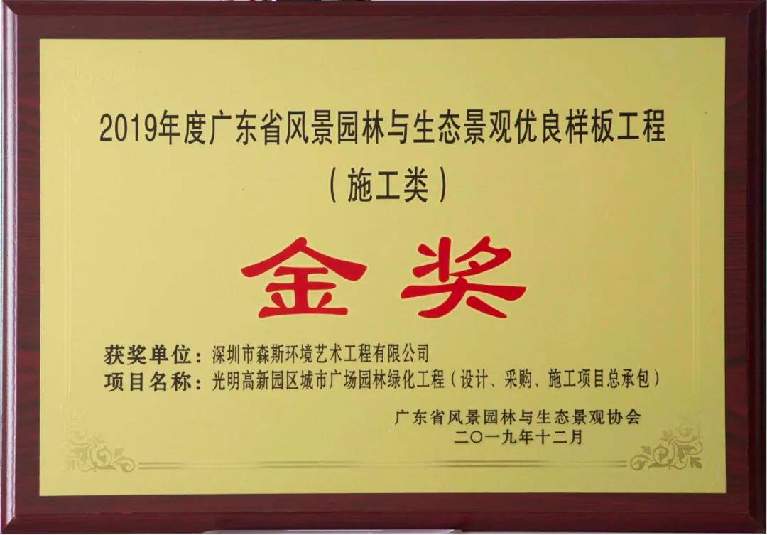 森斯環(huán)境承建的“深圳地鐵前海車輛段上蓋物業(yè)項目8號地塊園林景觀工程”、“光明高新園區(qū)城市廣場園林綠化工程(設(shè)計、采購、施工項目總承包)”、“龍華新區(qū)環(huán)城綠道建設(shè)項目(大水坑段)-勘察、設(shè)計、施工項目總承包(EPC)” 榮獲“2019年度廣東省風(fēng)景園林與生態(tài)景觀優(yōu)良樣板工程 (養(yǎng)護類)金獎”,專業(yè)水平實力再獲權(quán)威肯定!