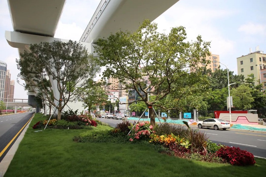 概況:該綠化工程路段由深圳市森斯環境藝術工程有限公司和杭州G20團隊共同施工設計,是光明大道的主要景觀節點,長約2.5公里。