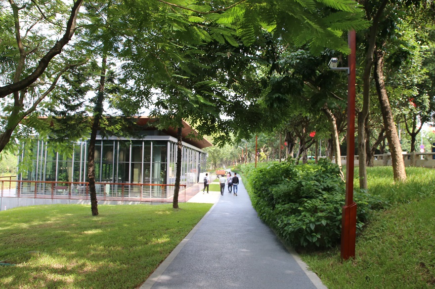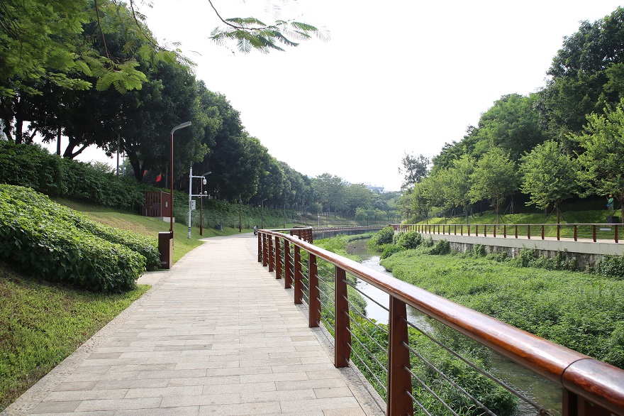 被譽為深圳“塞納河”的大沙河生態長廊景觀項目,全長約13.7公里,在深圳亞熱帶季風氣候下,雖處秋季,卻也更顯燦爛。