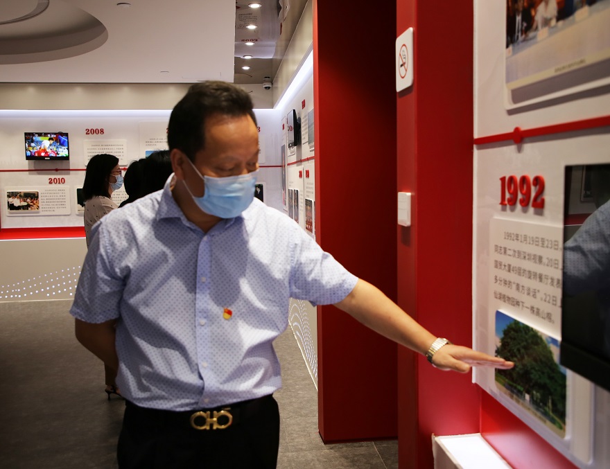 看到曾經參與建設的梧桐山照片,徐總不禁頓生懷念,在深圳的建設歷程中徐總即是參與者也是見證者。入口的人字引起了徐總的注意,他講述,“人”字的撇捺兩筆呈支架之狀態,相互支撐,即人要互相支持、互相幫助。言語之間讓人倍感親切。