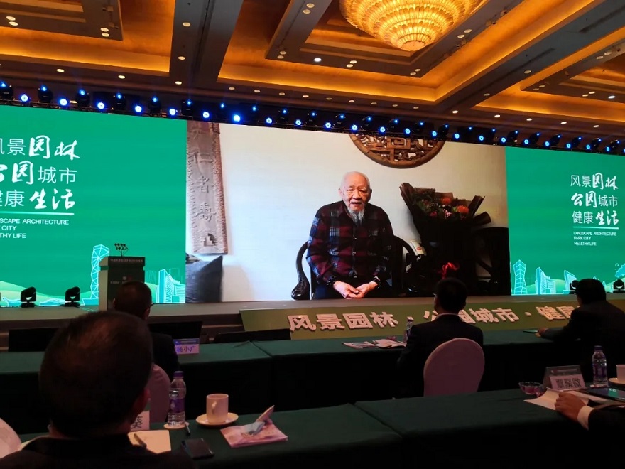 孟兆禎院士以視頻的方式致辭。他親切向全國風景園林同行問好,并寄予期望。指出面向美麗中國建設,風景園林工作者要從各個方面來增強行業力量,提高科技水平。園林植物研究方面要致力于遺傳育種。 規劃設計方面要"讀萬卷書,行萬里路"。施工管理方面要提高施工水平,了解設計意圖。他還提出,風景園林要跟隨時代的腳步,圍繞國家發展需求,提升能力,為實現中國夢,美麗中國,雙百年奮斗目標貢獻力量。