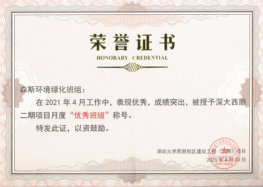 在此之前,森斯環境在深圳大學西麗校區建設工程(二期)項目4月份表彰會議上榮獲了“優秀個人”、“技術能手”、“優秀班組”、“優秀團隊”四項獎項,此次又再收到表揚信,體現了市工務署對森斯環境團隊的高度信賴與認可,森斯環境對此表示由衷的感謝。項目建設效果顯著,離不開各參建單位的辛勤付出與團結協作,一份耕耘一份收獲,森斯環境將牢記使命,繼續保持優良的工作作風及服務理念為項目建設再添佳績。