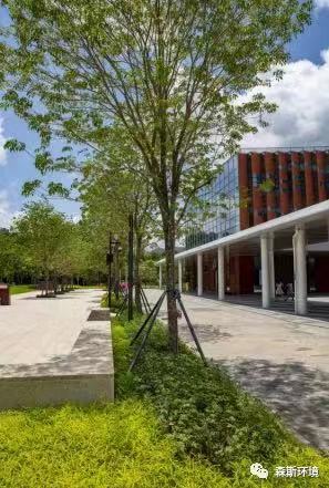 (2) 水岸周邊植物——挺拔向上,線條簡潔,體現活力校園的蓬勃精神。