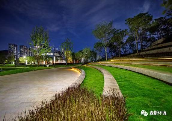 (5)平緩柔和的跌級水景樹林,成為學子晨讀圣地。