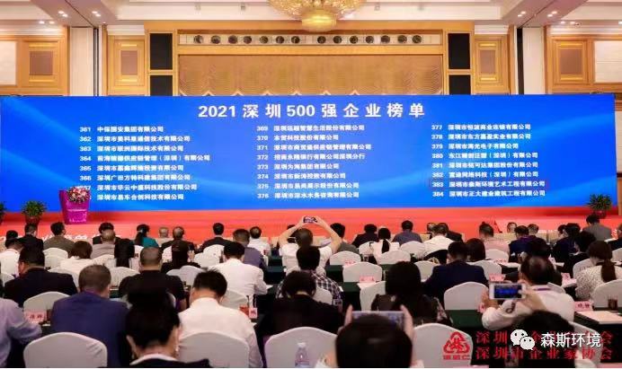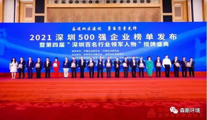 喜訊|森斯環境上榜 “2021深圳500強企業”榜單,董事長徐向明獲評“深圳百名行業領軍人物”!
