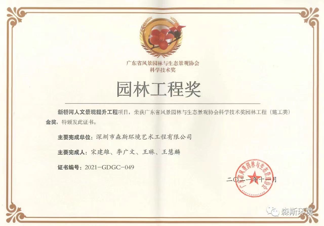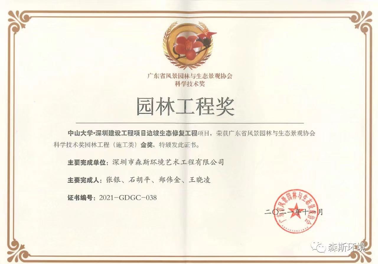 喜訊 | 森斯環(huán)境榮獲廣東省風(fēng)景園林與生態(tài)景觀協(xié)會(huì)科學(xué)技術(shù)獎(jiǎng)(園林工程獎(jiǎng))三項(xiàng)金獎(jiǎng)!