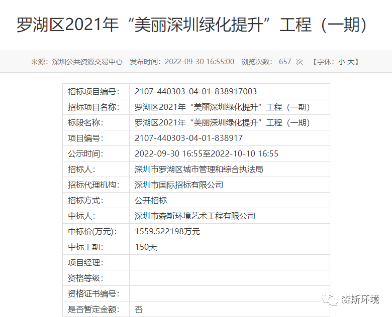 中標(biāo)喜訊 | 森斯環(huán)境中標(biāo)羅湖區(qū)2021年“美麗深圳綠化提升”工程(一期)項(xiàng)目
