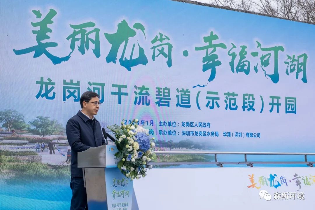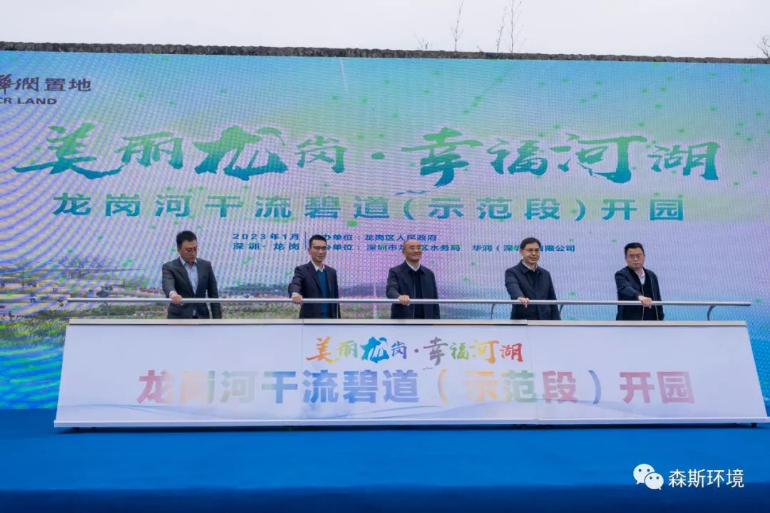 2023年1月16日上午,深圳市龍崗區人民政府在龍園公園召開龍崗河干流碧道示范段開園儀式,市政府副秘書長劉昂、市水務局副局長黃海濤、龍崗區委書記張禮衛、副區長谷更軍、華潤置地深圳大區副總經理李巍出席了會議,參加會議的還有區委(府)辦、宣傳部相關負責人,區水務局、文化廣電旅游體育局、城管和綜合執法局主要負責人,園山、龍崗、龍城、寶龍、坪地街道黨工委書記,以及參加項目勘察、設計、施工、監理等相關單位人員。深圳市森斯環境藝術工程有限公司黨支部書記、副總經理王曉凌作為施工單位代表出席了會議。