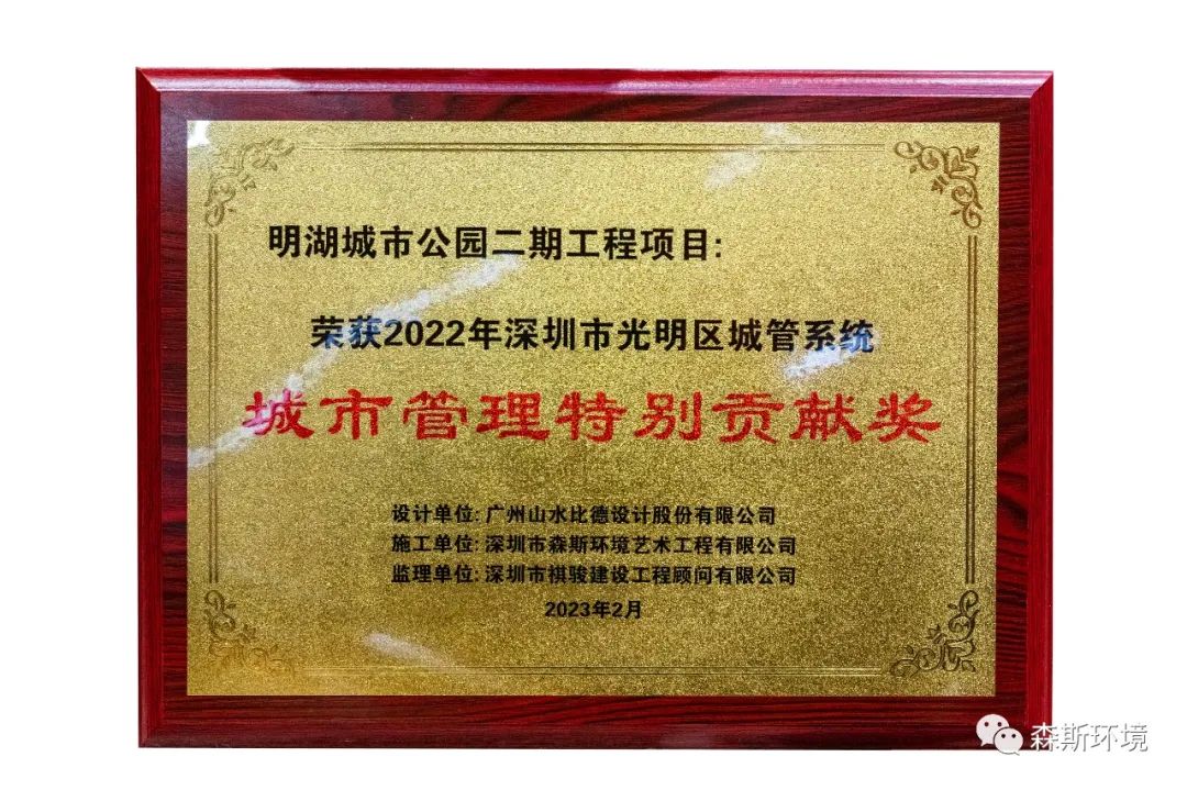 明湖城市公園二期工程項目榮獲光明區城管系統“城市管理特別貢獻獎”!