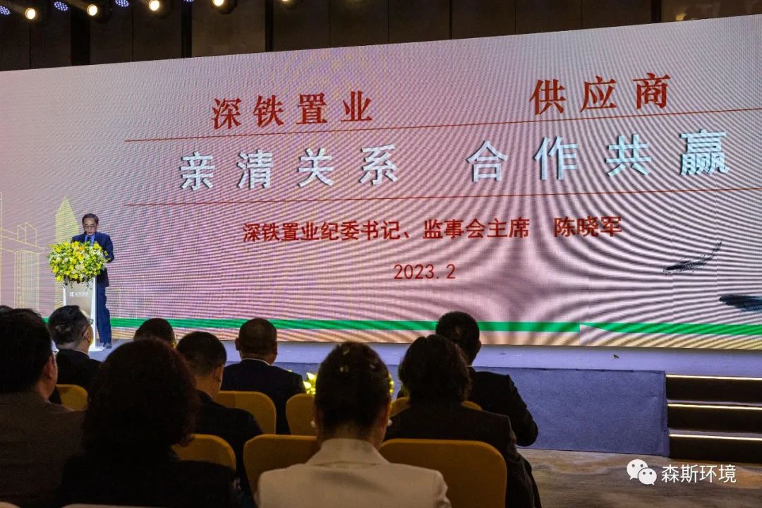 2月28日下午,深鐵置業2023優秀供應商大會在深圳深鐵皇冠假日酒店五樓宴會廳舉行。作為優秀供應商,森斯環境公司的徐向明董事長出席了會議。