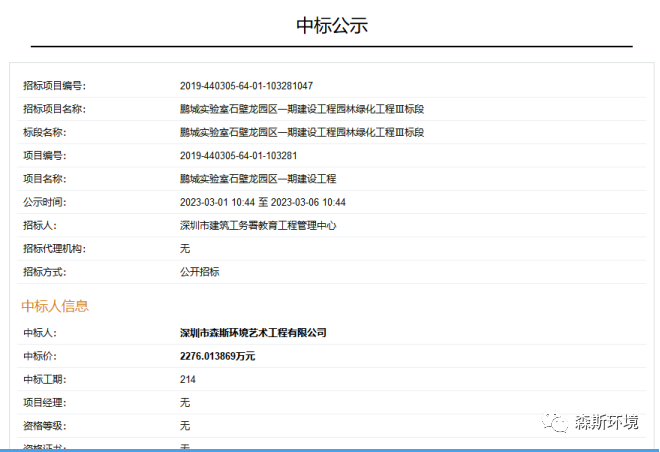 中標(biāo)喜訊 | 森斯環(huán)境中標(biāo)鵬城實(shí)驗(yàn)室石壁龍園區(qū)一期建設(shè)工程園林綠化工程Ⅲ標(biāo)段