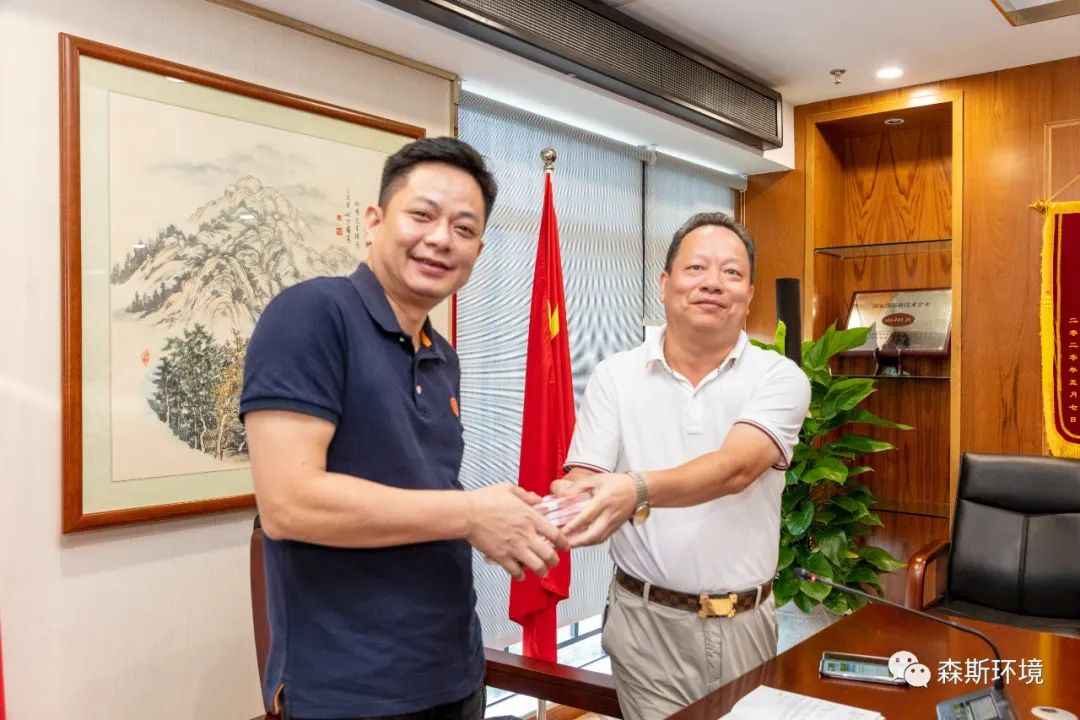 6月26日,森斯環(huán)境在公司會議室召開大會,隆重表彰在光明區(qū)明湖城市公園二期工程項目建設(shè)中表現(xiàn)突出的項目負責人胡安興。徐向明董事長親手將5萬元獎金頒給獲獎人,并介紹了他的事跡,號召公司全體員工向他學習。隨后,獲獎人向大家簡單分享了他的成功經(jīng)驗。