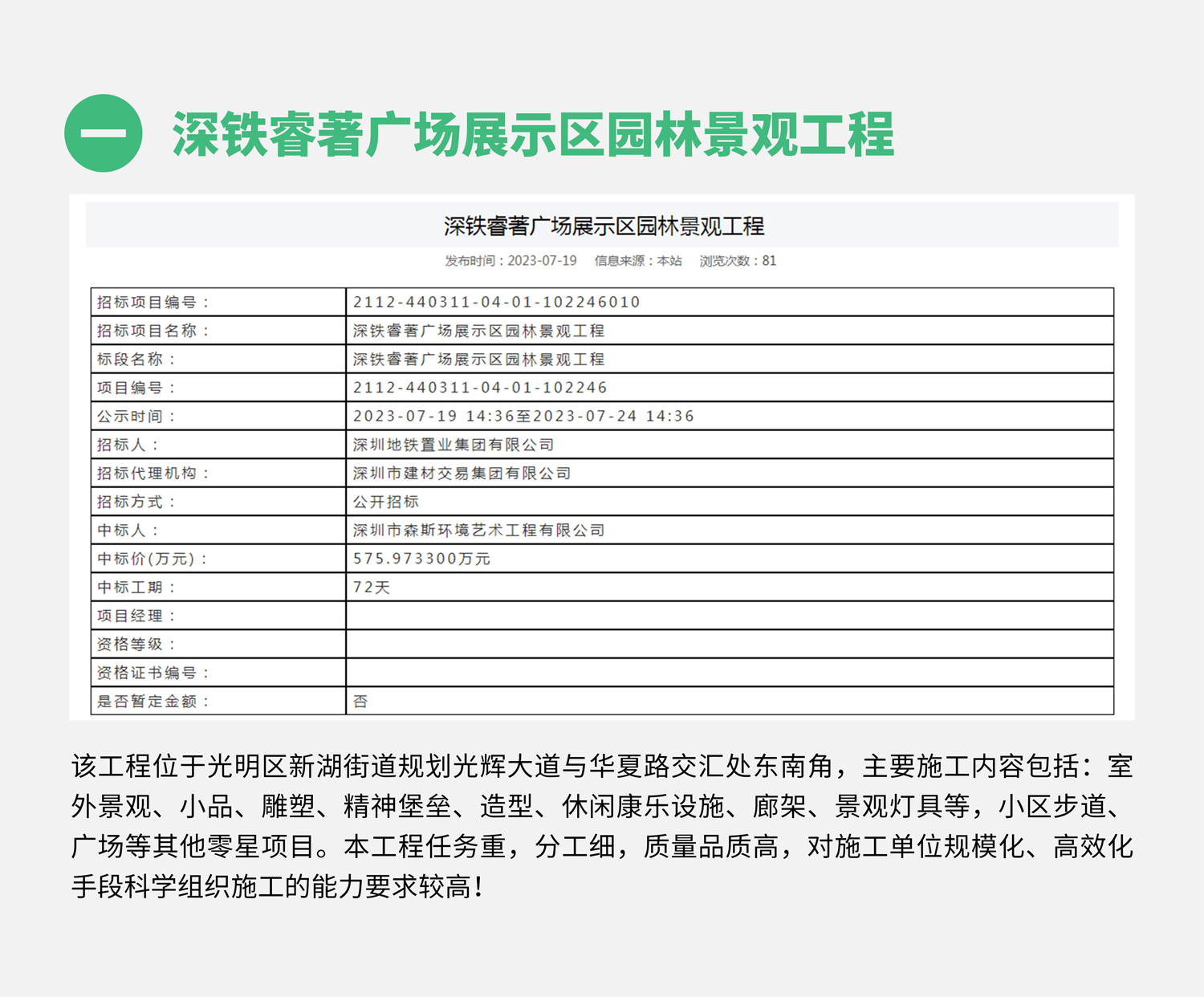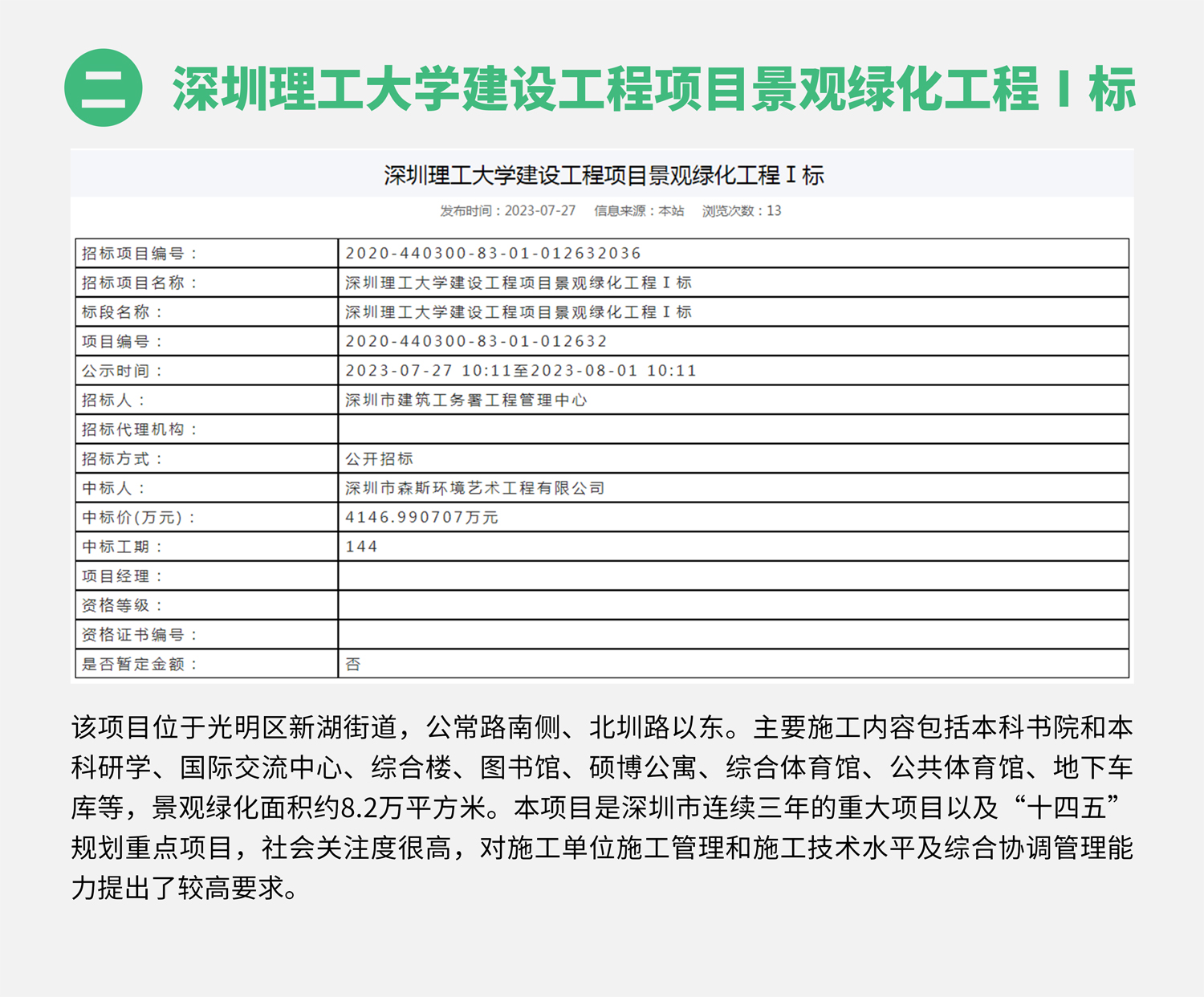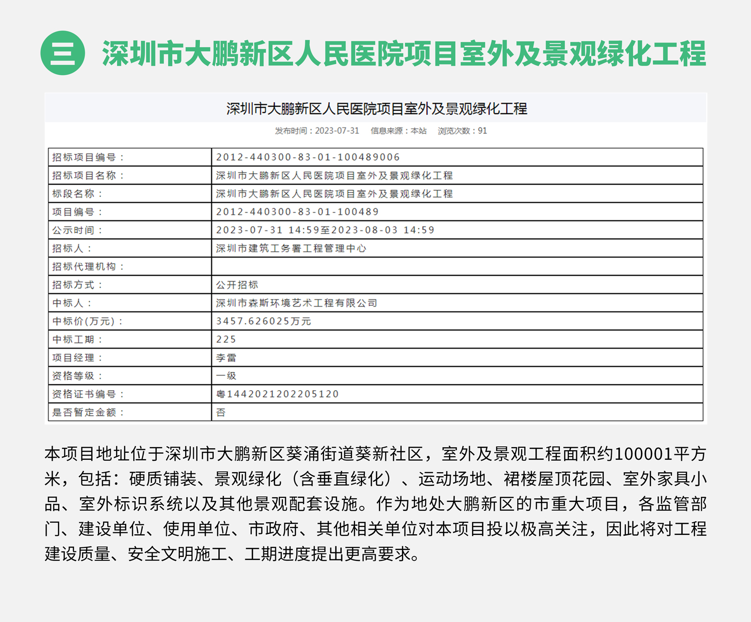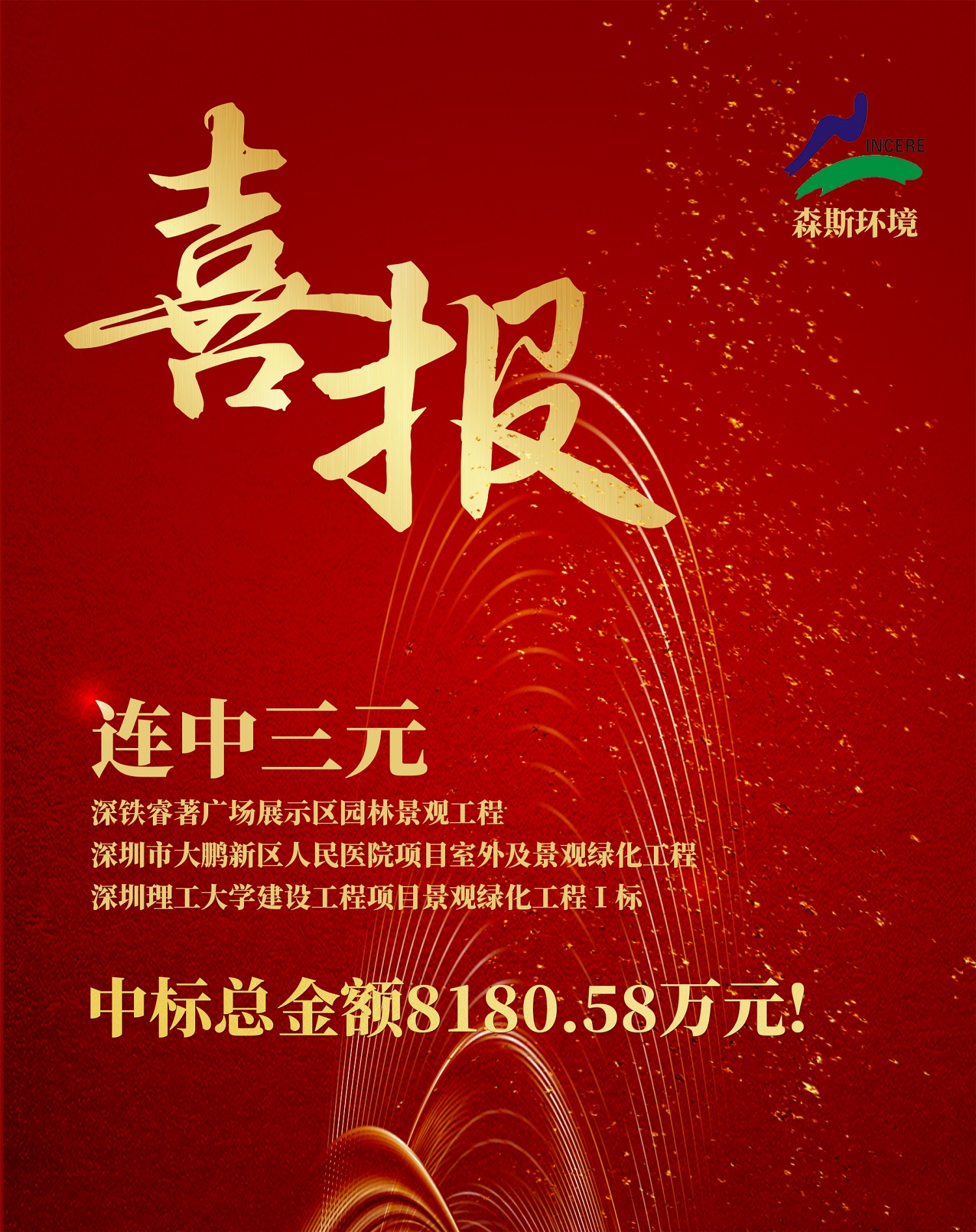 進入七月份,森斯環境主營業務持續發力,喜訊頻傳,連續中標深鐵睿著廣場展示區園林景觀工程、深圳理工大學建設工程項目景觀綠化工程Ⅰ標、深圳市大鵬新區人民醫院項目室外及景觀綠化工程,中標總金額8180.58萬元,取得第三季度開門紅!