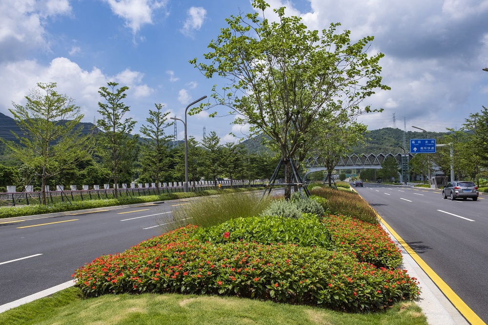 坪山大道南段為坪山區“五橫十縱”主干路網中重要一橫,是坪山區連接南坪快速的主要快速出入通道。森斯環境在施工過程中制定了嚴格的選苗標準,精準控制微地形偏差,按照設計要求和國家規范嚴格把控施工質量,旨在為周邊社區居民創造一個四季有花、舒朗通透、生機盎然的休閑環境。