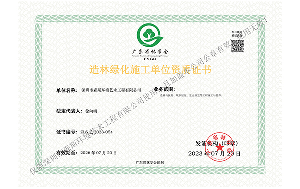 造林綠化施工單位資質(zhì)證書