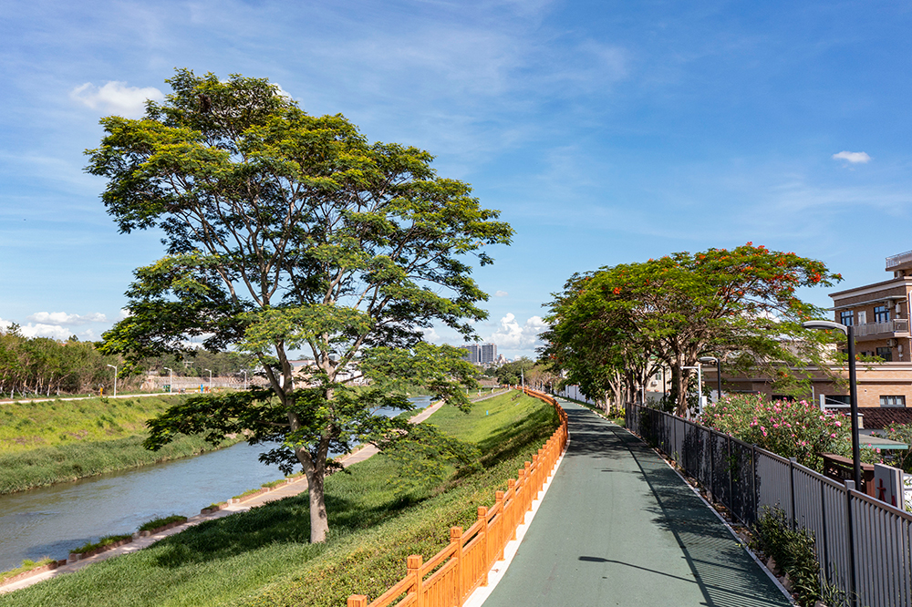 本項目包括觀瀾河、白花河沿線5.8公里長的綠道、綠廊景觀、鋪裝及配套設施的建設,總面積10.2萬平方米。由于觀瀾河兩岸的土地情況較為復雜,在建設工程中,森斯環境公司發揮在EPC工程中的主觀能動性,與建設單位共同努力,一同解決了項目周邊土地整備及綠道改線的問題。這條兼具生態功能和景觀效應的“綠色長廊”,已成為龍華區的美麗風景線,真正實現了“青山綠水繞、觀瀾入畫來”的建設愿景!