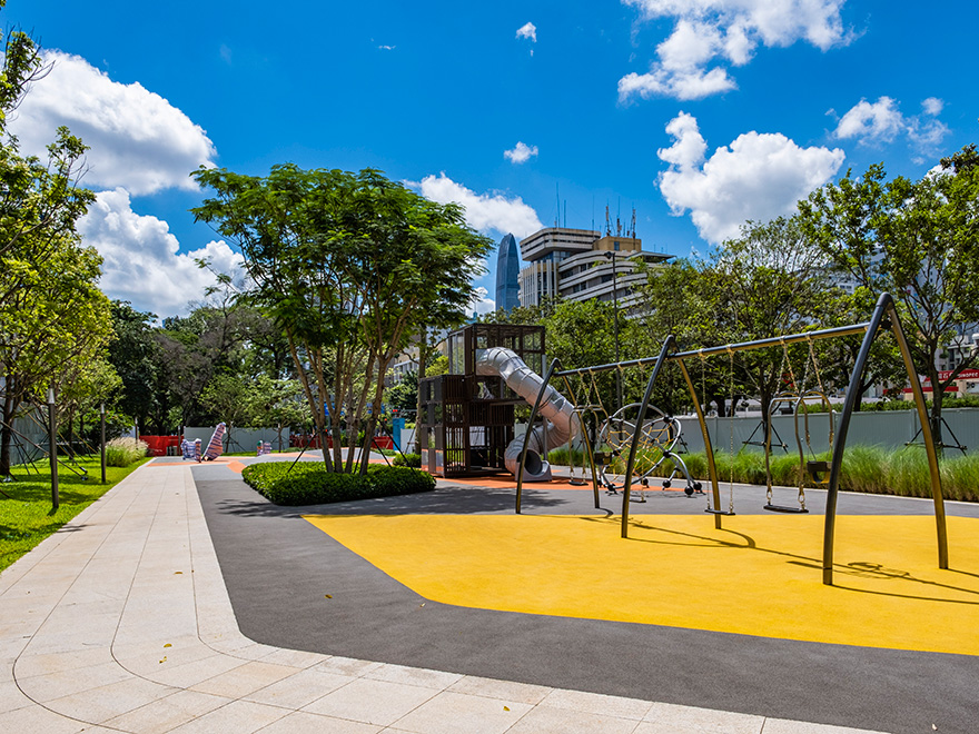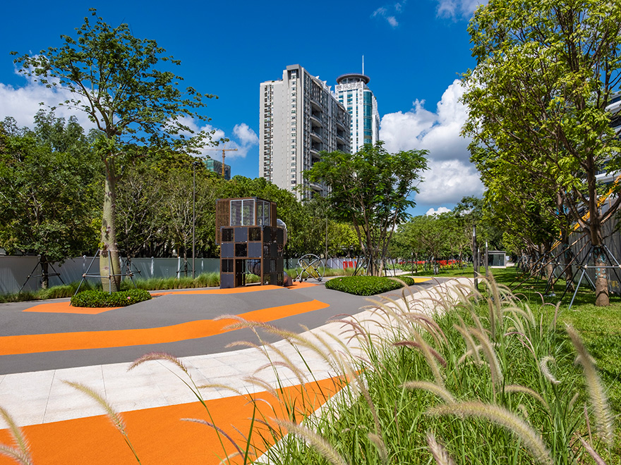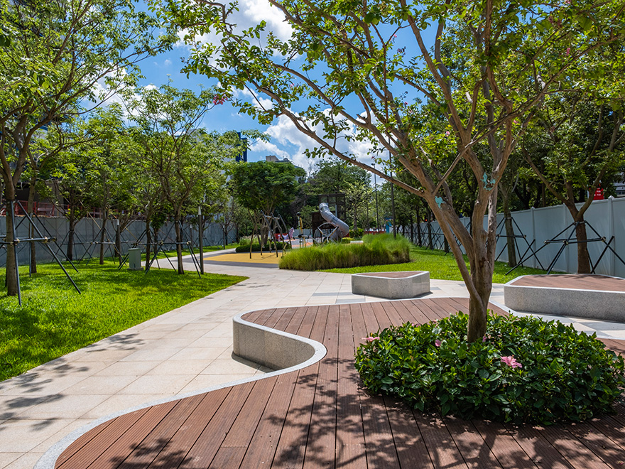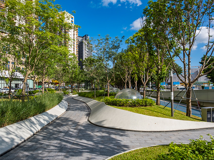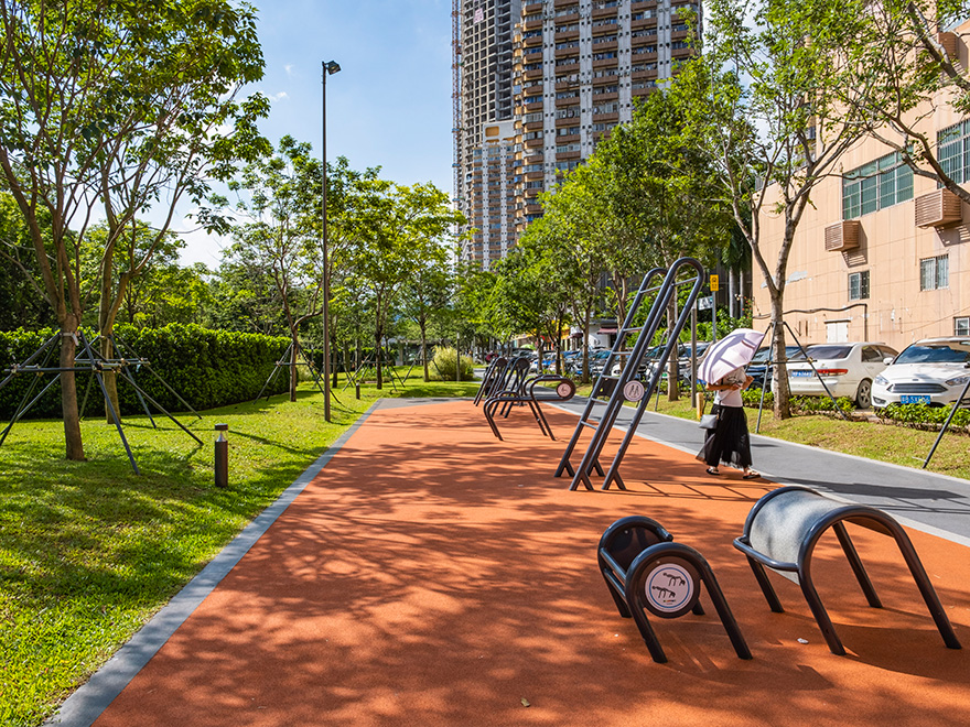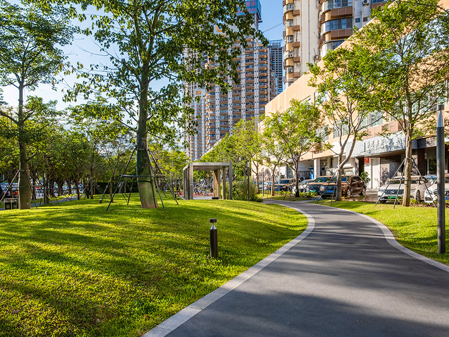 項目通過景觀設計改造提升,目標以人民為中心,有獲得感、幸福感和文化認同感的公園廊道,提升營商環境,加強城區競爭力;加強綠化提升功能,以社區運動健身、活動休閑、植物科普為主。 項目配備進口兒童游樂設施與運動器械,提升市民生活品質與運動樂趣;綠化提升以綠色為基底,增加城市色彩,配套海綿城市,服務城市。每個區塊賦予不同設計主體與理念,光導花園采用清水混凝土擋墻消化采光井高差,種植禾本科植物,豐富生態景觀;宜學園通過植物消減噪音對周邊學校的影響,結合坐凳、色彩等營造宜學友好的空間氛圍;橋底優化擋墻立面,以線性植物設計營造簡潔,鮮明,干凈的橋下空間,外圍種大葉油草,內側種植兩層耐蔭植物搭配鋼板收邊。 項目設計并結合城市建設規劃定位和需求研究,對施工范圍綠地進行統一提升,打造高品質綠化提升景觀工程。