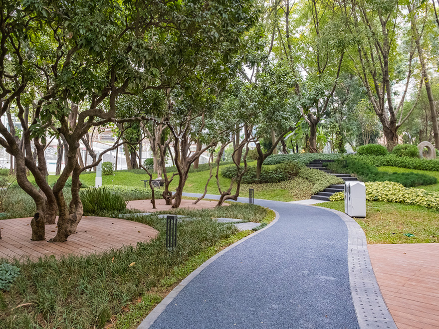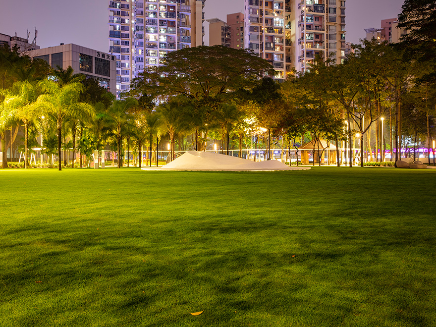 本項目為深圳市南山區(qū)城管綜合執(zhí)法局公園改造工程,面積2.7萬平方米,保留了全園喬木,并延續(xù)南海大道喬木花林;塑造可進入、活動豐富的無界大草坪,連接書城與園區(qū),營造文化客廳,疏林草地的開敞氛圍,簡潔、疏朗、通透、大氣;在各入口處,配置了植物品種多樣、層次豐富的花境,以自然斑駁的形式種植,在株高、色彩和季相上達到自然和諧,滿足都市人們回歸自然的期望。