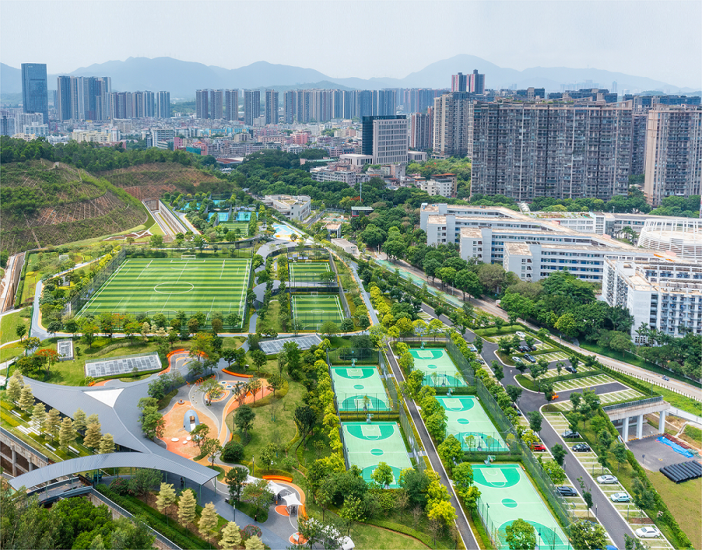 龍城公園活力谷位于深圳市龍崗區如意路以北、公園路以東的龍城公園內西南側,靠近公園西出口,已建成開放面積約10公頃。園區以“超級秀場”為主題靈感,打造活力秀場、時尚秀場、生態秀場。園區分為地鐵上蓋區、活力綠谷區兩區。三環串聯十園,使整個園區設計重點突出、色彩鮮明。園區充分吸納市民多元化的文體生活需求,科學合理配置體育健身設施,建設籃球場、足球場、網球場等22片運動場地,設置兒童游樂設施、滑板場、健身步道等活力設施,堅持全季活動、晝夜可游、全民鍛煉的服務理念,實現場地與活動、場地與人群、景觀與構筑、動區與靜區的多重互動,突顯場地的活力定位,滿足全民健身需求,打造“公園+活力”新業態。