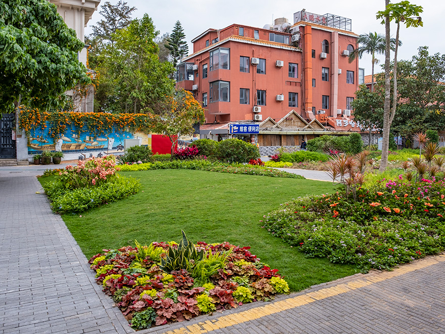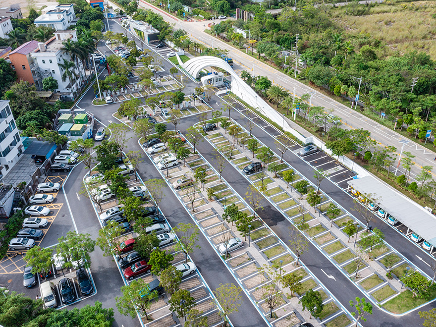 項(xiàng)目地點(diǎn)位于深圳市大鵬新區(qū)大鵬街道銀灘路東側(cè)較場(chǎng)尾景區(qū)內(nèi),工程改造提升面積約3萬平方米,涉及較場(chǎng)尾銀灘路主入口、P1停車場(chǎng)、中心廣場(chǎng)節(jié)點(diǎn)區(qū)、中軸道路展示區(qū)及及特色花漾街區(qū)等五個(gè)區(qū)域的景觀品質(zhì)提升。項(xiàng)目分別打造成為:海潮大門入口、樹蔭生態(tài)停車場(chǎng)、海浪文化廣場(chǎng)、特色主街及通海花街花巷,主要建設(shè)內(nèi)容包括:園建、綠化、電氣、給排水及配套設(shè)施等。 為了適應(yīng)較場(chǎng)尾片區(qū)日益增多的游客停車及人流集散的需求,本次改造的停車場(chǎng)全面響應(yīng)并落實(shí)了“海綿城市”的建設(shè)要求。在設(shè)計(jì)施工,材料選型方面進(jìn)行了大膽創(chuàng)新。停車場(chǎng)“海綿城市”材料的實(shí)質(zhì)性應(yīng)用,表現(xiàn)出優(yōu)秀的滲水、抗壓、耐磨、防滑以及環(huán)保美觀、舒適易維護(hù)和吸音減噪等特點(diǎn),成了“會(huì)呼吸”的城市景觀路面,并有效的緩解了城市的熱島效應(yīng),使大鵬較場(chǎng)尾的游客享受到了極高品質(zhì)的旅游體驗(yàn),同時(shí)也極大地提升了新區(qū)的整體城市空間品質(zhì)。